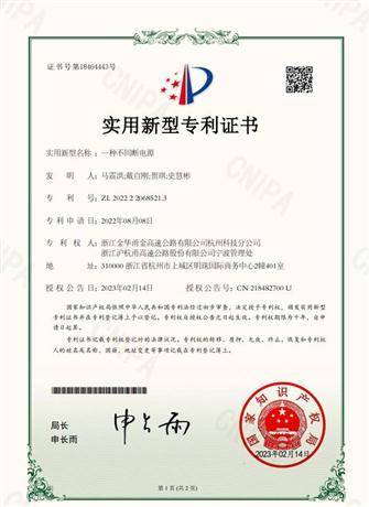 近日,寧波管理中心“一種不間斷電源”獲得國(guó)家實(shí)用新型專(zhuān)利證書(shū),為高速公路保暢工作再添利器。