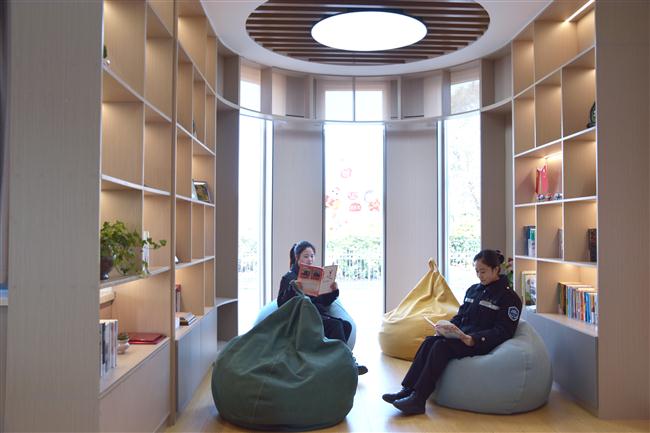 除了線上平臺(tái)的學(xué)習(xí),中心所同步在一樓員工之家開辟了“學(xué)習(xí)角”?!皩W(xué)習(xí)角”采用多功能六邊形可變動(dòng)式桌椅,內(nèi)嵌三臺(tái)可升降一體機(jī)組成,每臺(tái)電腦內(nèi)裝有最新版的制度文件、學(xué)習(xí)練習(xí)平臺(tái)。邊上還配置了圖書架、閱讀椅,擺滿了各類書籍、報(bào)刊、雜志等學(xué)習(xí)資料,為員工提供了一個(gè)整合碎片化時(shí)間學(xué)習(xí)、探討和交流的場所。