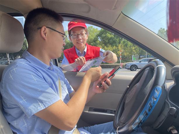在相鄰車道,一名駕駛員向收費(fèi)員詢問:“聽說在你們這里下高速的車輛可以享受酒店折扣優(yōu)惠?”正在一旁值守的黨員志愿者倪劍鋒立即迎上前,耐心地向司機(jī)介紹起“智在行”小程序及相關(guān)產(chǎn)品的使用方法。在剛剛過去的中秋國(guó)慶雙節(jié)假期,嵊新收費(fèi)中心所共計(jì)服務(wù)綠通車輛150余輛,減免通行費(fèi)逾4萬元,并為132位司乘兌換了景區(qū)、酒店優(yōu)惠福利。
