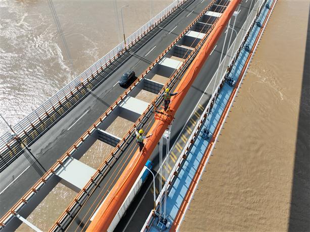 隨著除濕機安裝完成,系統(tǒng)進入試運行階段?!拔覀儗⒅骼|進行分段除濕并多點監(jiān)測,在監(jiān)控中心電子屏幕上能實時顯示除濕系統(tǒng)運行情況?!表椖控撠熑私榻B,預計3個月能除掉主纜內部水分,之后進入保持期,能有效保證橋梁結構強度、提升橋梁安全性、延長橋梁使用年限。據(jù)悉,該項目從籌備到實施歷時2年,從大型施工平臺、纏包帶材料改良、除濕機研發(fā)……在官華等橋梁專家的帶領下,不斷攻破一個個關鍵技術難題,實現(xiàn)主業(yè)發(fā)展動力向“技術”引擎切換。